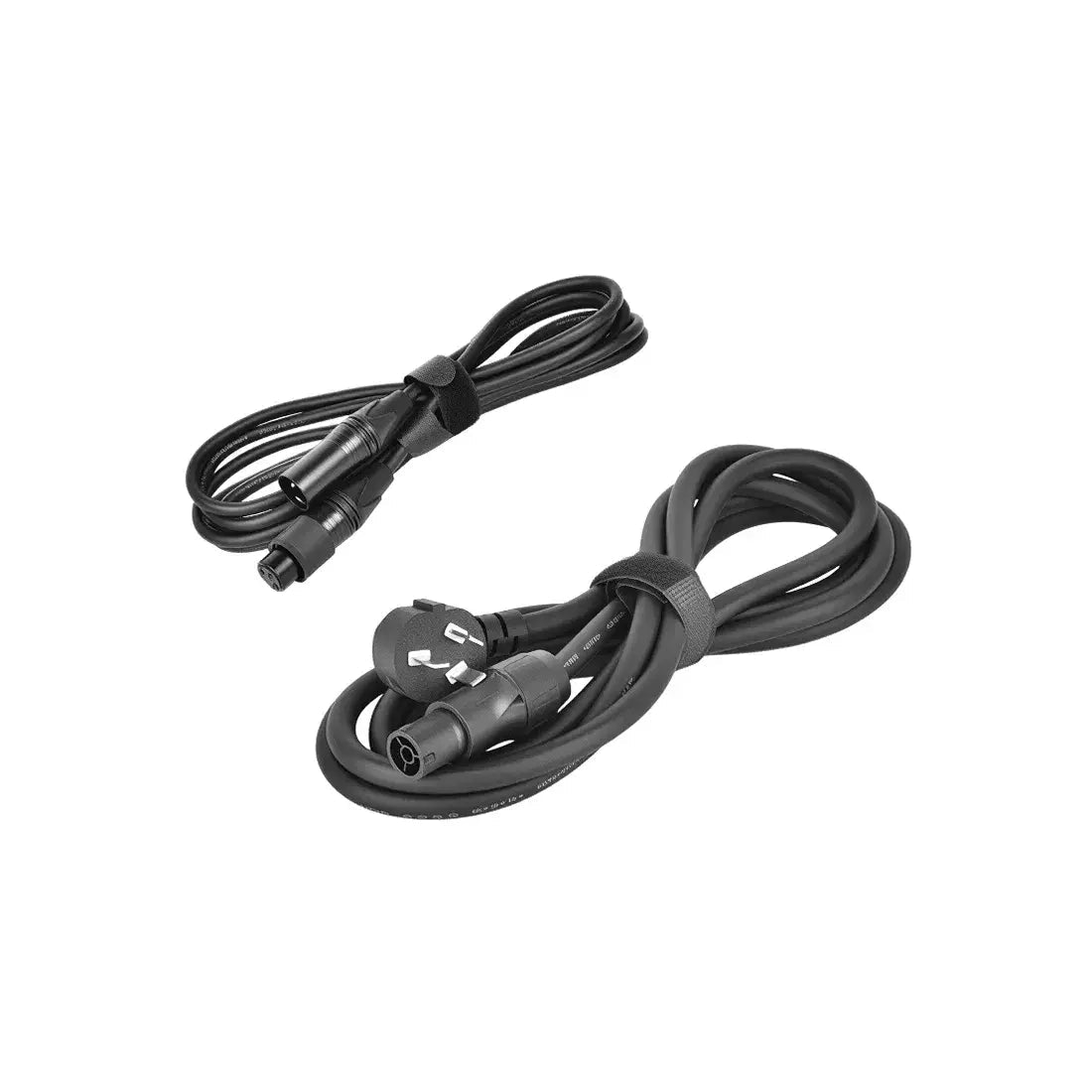 Yes — up to 6 Elemental Sparks on a single DMX/power daisy-chain. Both 3-pin and 5-pin DMX connections have IN/OUT ports for pass-through. For larger installations, split into multiple chains of 6 or fewer units each.